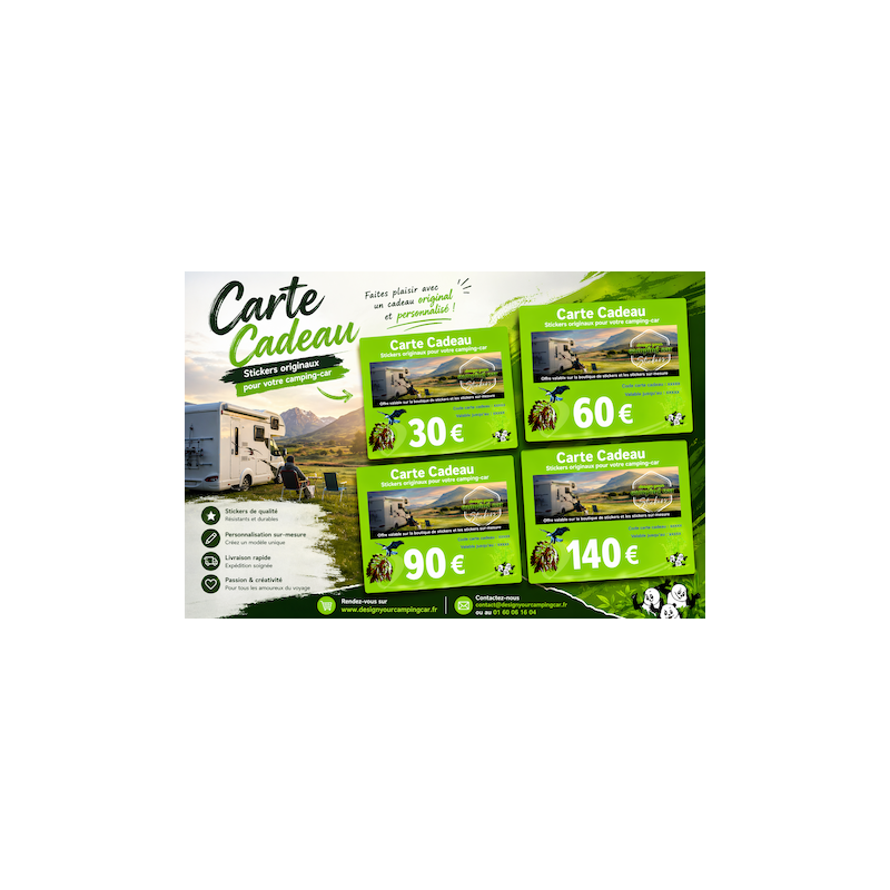 La carte cadeau est valable sur tous les stickers et les stickers sur-mesure.
